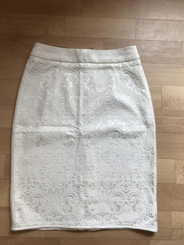 Юбка мини {не очень короткая}, на талию в молочном цвете с текстурным принтом. Фурнитура серебряная. Размер S. За доп фото обращайтесь :}