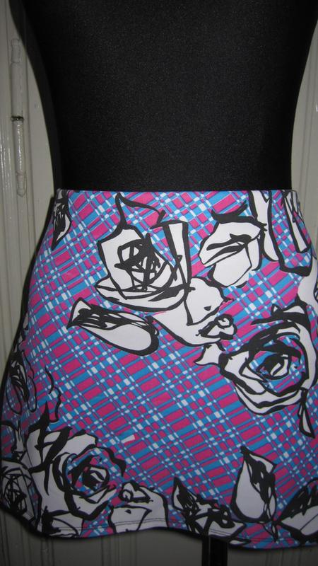 юбка розово-голубая.полиэстер.ПОТ 34.ПОБ 48.длина 37см