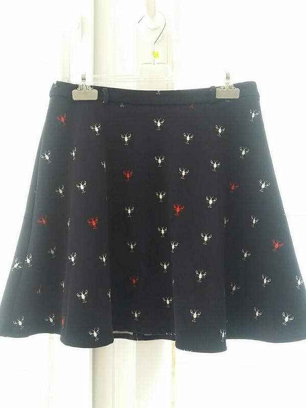 трапецевидная юбка с раками цвет темно синий, застежка замочек сзади, есть петли для пояска, без дефектов, состояние новой, от 38см, низ 82см, длина43см, торг