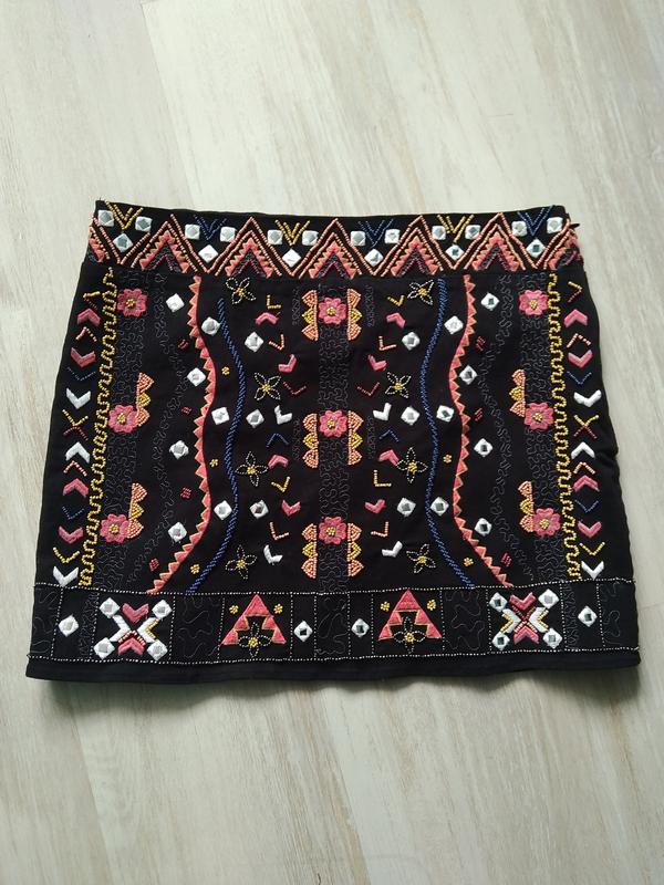 Юбка с вышивкой бисером, смотрится шикарно. Размер 14/ 42. Пояс 82-84 Длина 38,5 Ширина внизу 100