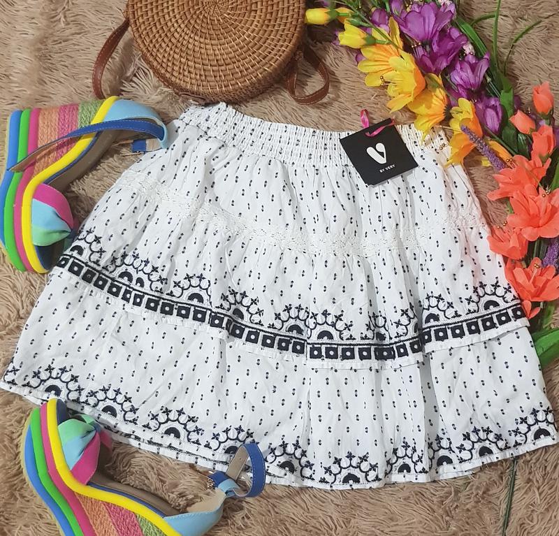 брендовая мини юбка воланами с вышивкой длина40 ПОТ(резинка)-32