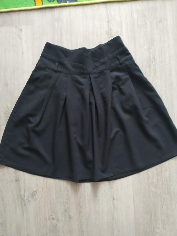 Юбка со складками, есть два кармана, застёгивается сбоку на молнию. Длина - 53 см, пояс - 38 см.