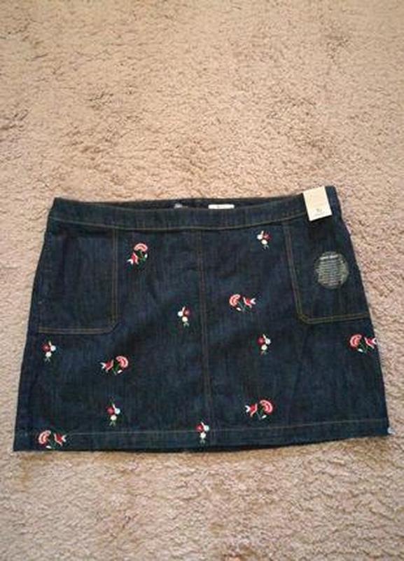 Юбка джинсовая мини, новая, вся в вышитых цветочках,большой размер! Размер 22