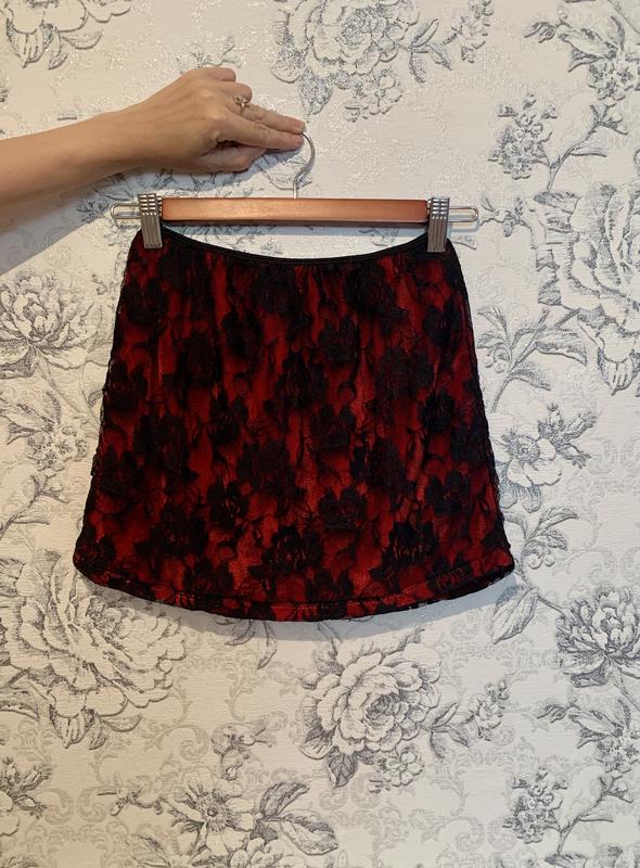 Міні-спідниця з мережива, підкладка червона, довжина виробу 33 див.