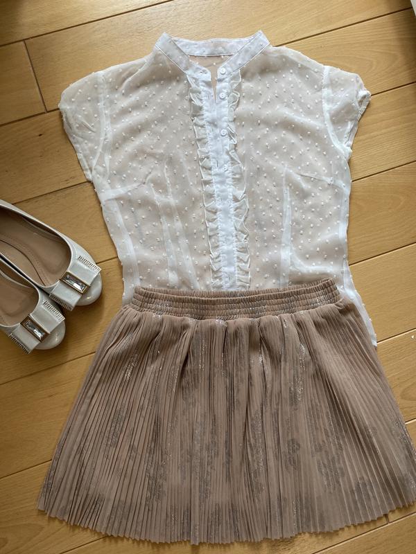 Ідеальний літній лук☀️Прозора шифонова блуза та спідниця зі срібним принтом. розмір S, ціна за комплект 220 грн. Окремо 110 грн одиниця. Ідеальний стан🔥