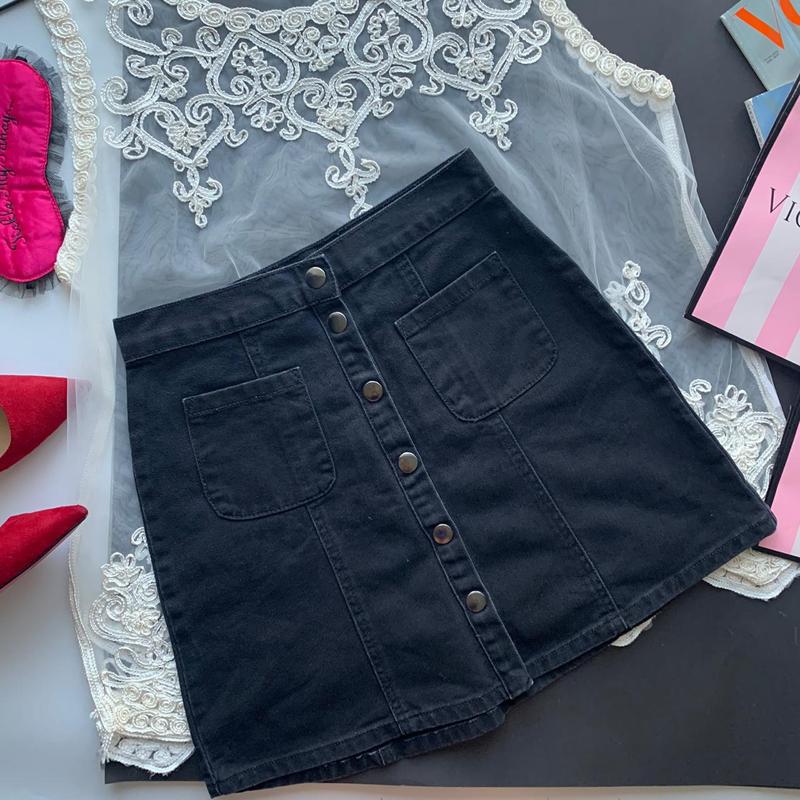 👗сногсшибательная чёрная джинсовая мини юбка/высокая юбка на пуговицах с карманами👗