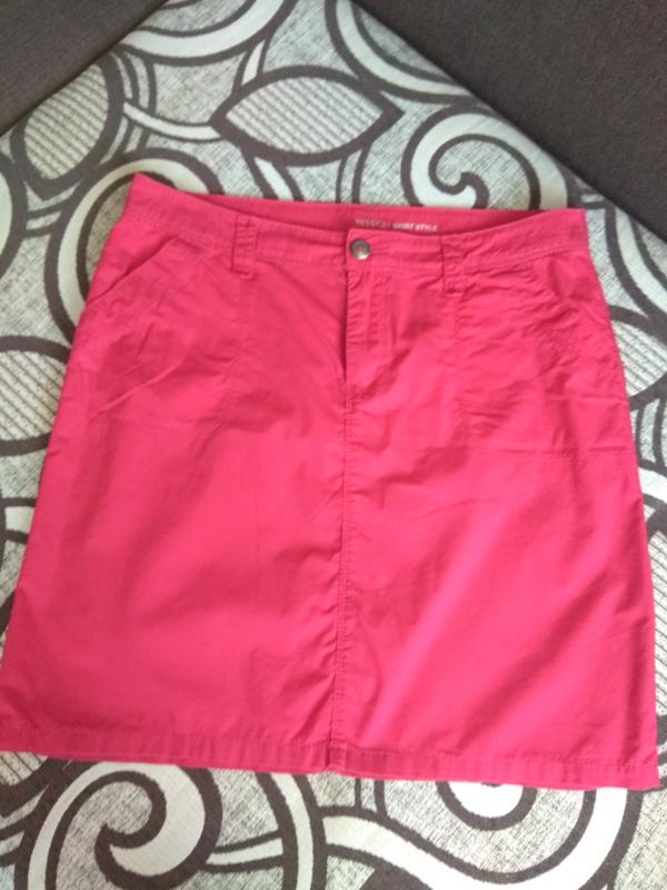 Розмір вказаний 38. Заміри : ПОТ - 42, ПОБ- 51,довжина по боковому шву - 48 см. Колір темно рожевий. Є дві бокові кишені та імітація двох ззаду.