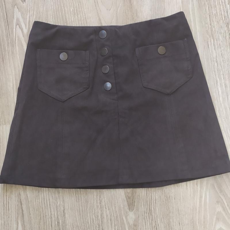 Замшевая юбка, спереди на пуговицах, по бокам кармашки. Без дефектов, замеры по запросу