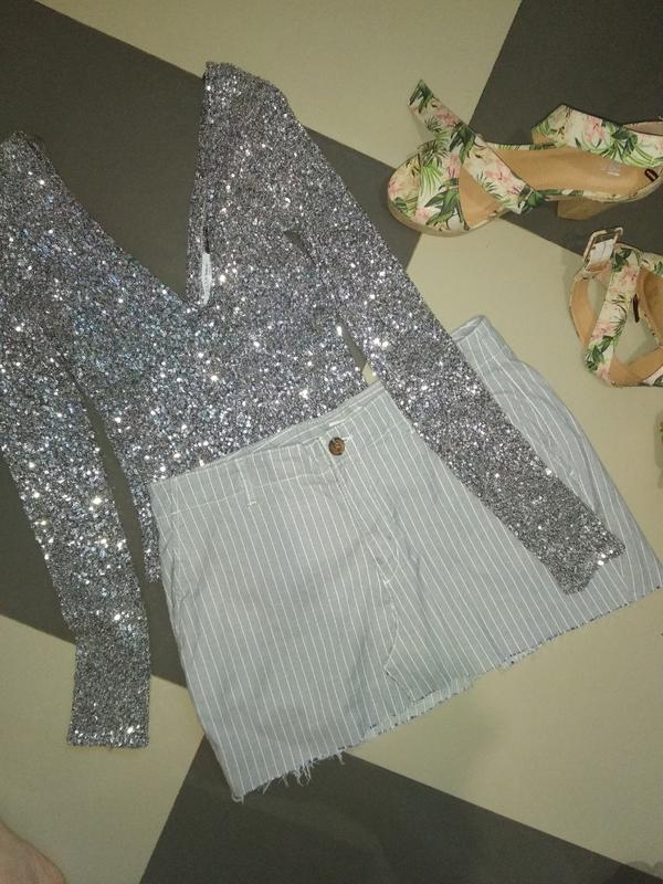 новенька міні спідниця, нежноголубого кольору, принт біла смужка, котонові