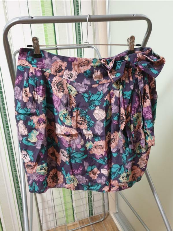 С подкладкой на замочке, сбоку бант. ПОТ 39-41 см, бедра до 100 см, длина изделия 41 см