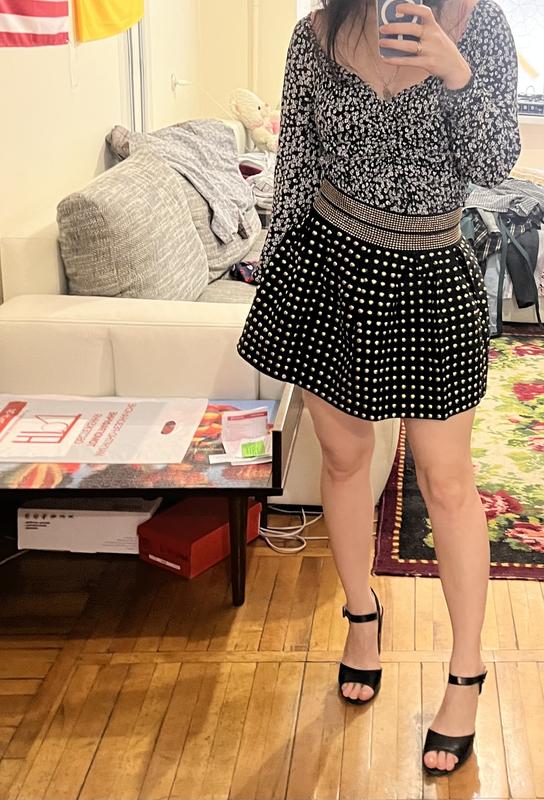 Ошатна чорна спідниця з золотими заклепками. Заміри: довжина 37 см, напівобхват талії 32 см