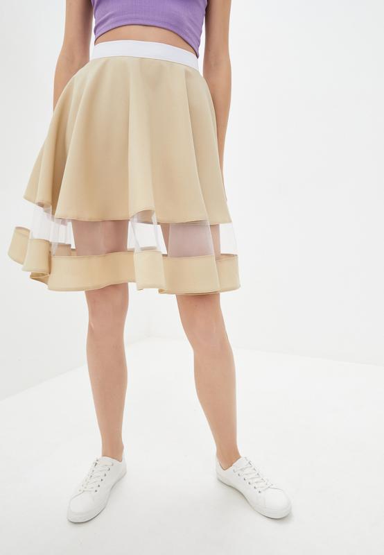 Универсальная юбка для работы или учебы | юбка с евросеткой и контрастным поясом | 27570