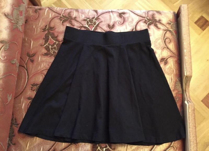 Спідниця чорна , розміру S. Фасон конічний (клеш) Добре тягнеться Об’єм в талії від 70 см Довжина спідниці 45 см Більше фото у приватні повідомлення