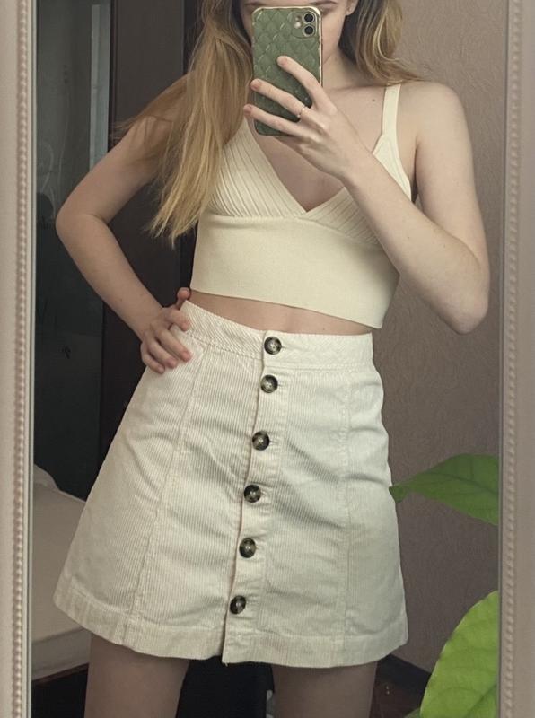 Идеальная мини юбка с контрастными пуговицами. Незаменимая базовая вещь. Очень удобная в использовании, подойдет как на жару так и на холодное время года.