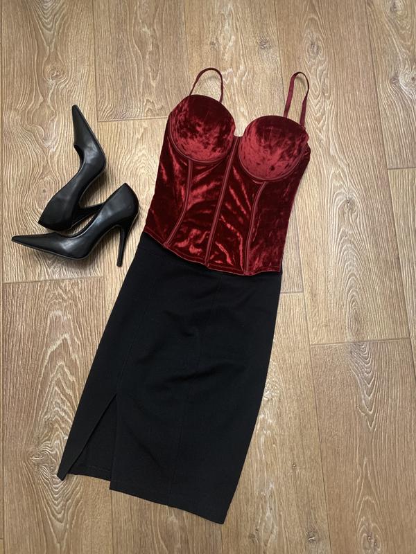 Юбка с мини разрезом по правой ноге. Пот - 35 см, длина - 50 см, разрез - 18 см. Ткань не тянется. Потайной замок с левой стороны.
