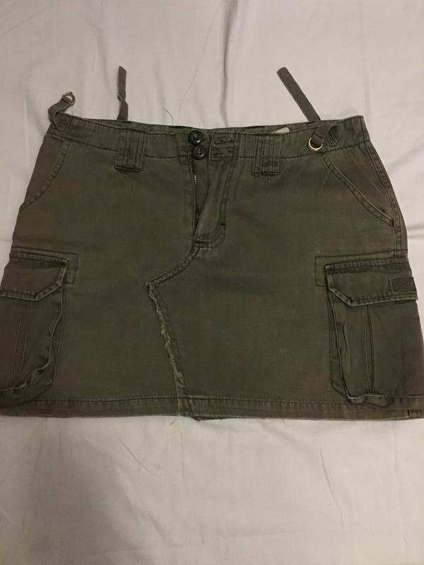 Юбка коттон,защитного цвета,стильная,с большими карманами,в отличном состоянии,пот 43,поб 52,длина 38