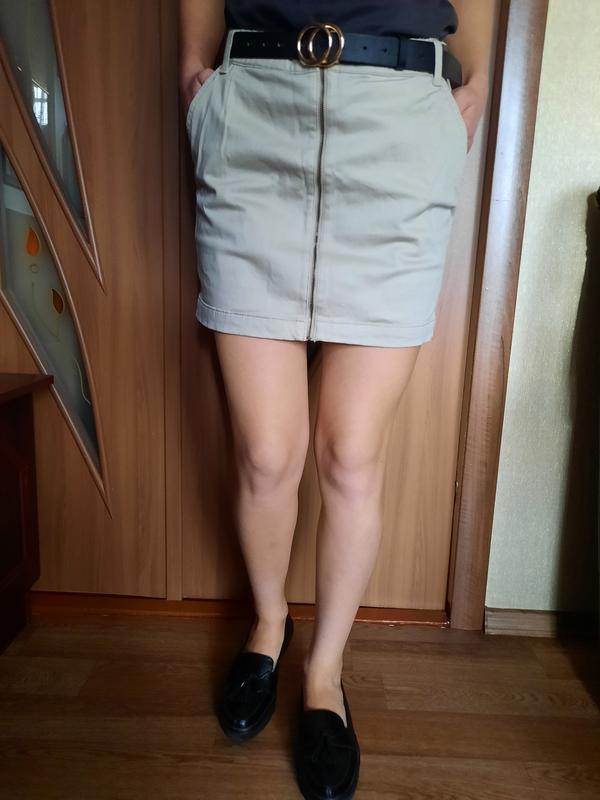 Очень крутаю юбка House в бежевом цвете, немного тянется Спереди рабочая молния, есть карманы Размер М - полупояс - 38,5 см - ПОБ - 44 см - длинна - 39 см
