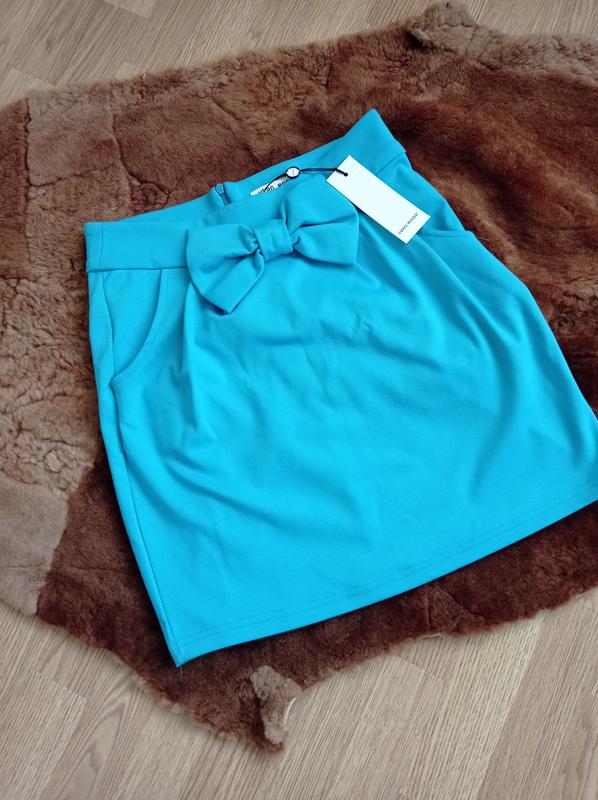 Бірюзова спідничка з бантом і двома кишенями ззаду на потаємний блискавки