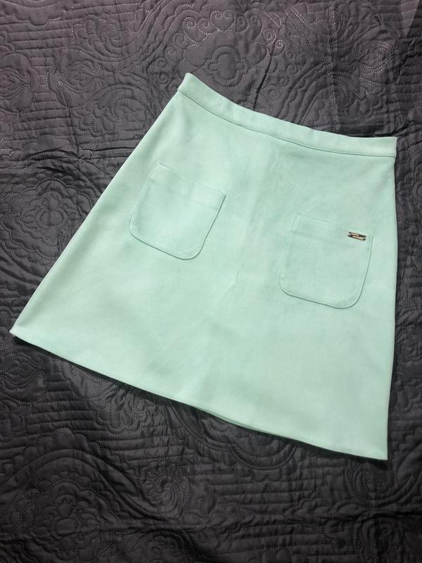 Юбка мятного цвета, пояс-36 см, длина 45 см. Хорошо сядет на Л, состояние идеальное, носила пару раз, материал мягкий и приятный к телу!