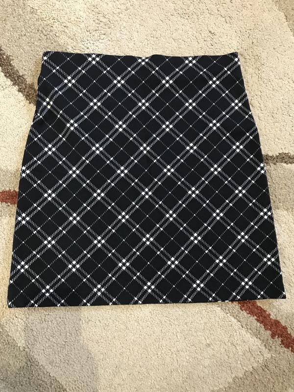 На резинке,талия-37 до43,бёдра-43,по низу-49 длина-45.Без дефектов {нам велика}