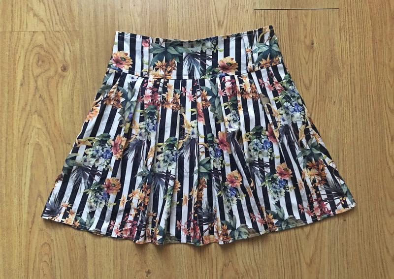 Юбка клёш. Сзади на замочке. Спереди с двумя кармашками. Можно одевать под пояс. Размер 38 (как по мне, так универсал). Покупалась в Европе. Новая. Длина 45 см, ОТ 36. На любой объём бёдер. Материал тянется. Очень красиво и стильно выглядит!)