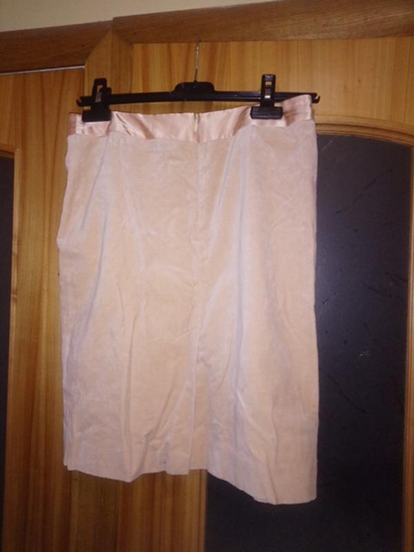 Классическая юбка из молочного бархата с атласным поясом. Сзали на молнии, шлица.