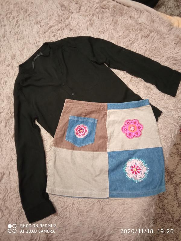 Комбінована спідничка,тканина вельвет+джинс з елементами вишивки,одягала декілька разів,стан нової,розмір 36 або S