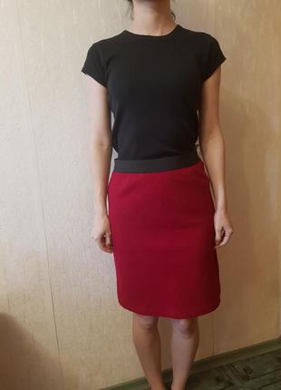 Симпатичная юбочка темнокрасного цвета, пояс резинка, обхват талии 76см, обхват бедер 93см, длина 54см, без дефектов. Ткань эластичная