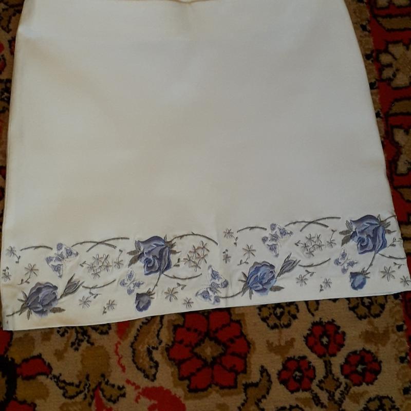 Стрейчевая юбка с вышивкой спереди.Сзади молния.