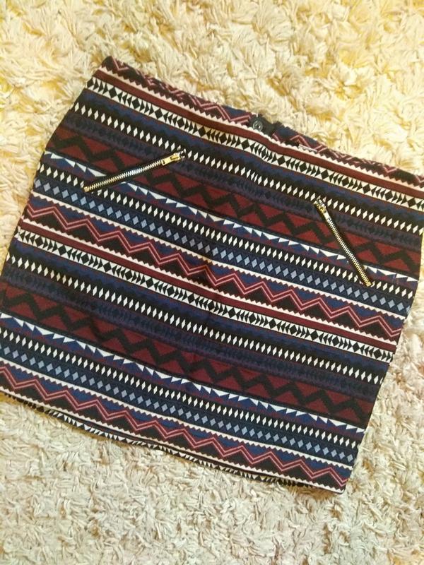 Отличная мини-юбка из плотной жакардовой ткани на подкладке. Застёгивается сзади на молнию. Длина 39, ПОБ 47, ПОТ 38.