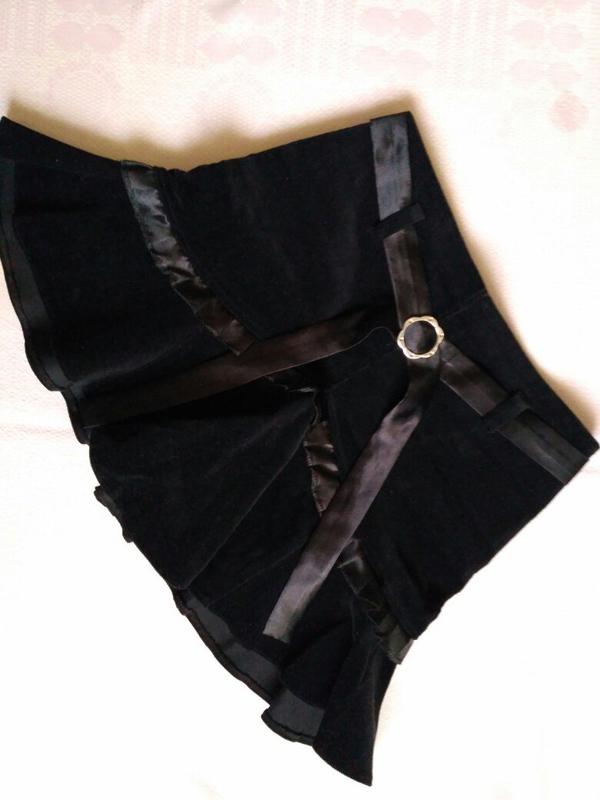 Вельветова спідничка з атласним пояском і оборочкою. Носилась мало. 46 розмір,ПОТ - 36 см, ОБ - до 98-100 см, довжина - 38 див.
