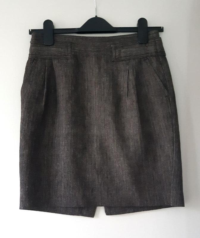 Юбка Mango с высокой талией. Темно-коричневого цвета, в рубчик. На подкладке. Отличное состояние, без дефектов.