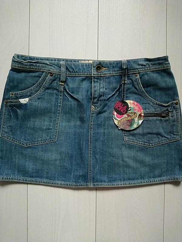 Джинсова спідниця фірми Billa Bong нова сток Матеріал 100 % котон Довжина 34 см, Напівобхват пояса 40-41 см, Напівобхват стегон 50 - 51 см