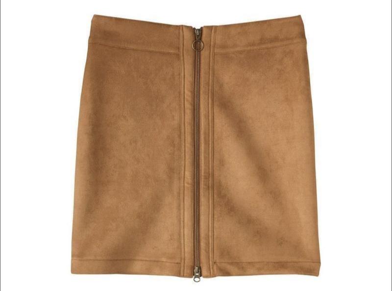 Замшевая юбочка коричневого цвета, с молнией спереди, по всей длине. Коллекция Хайди Клум Размер С Талия 36см Бёдра 40см Длина 41,5 см