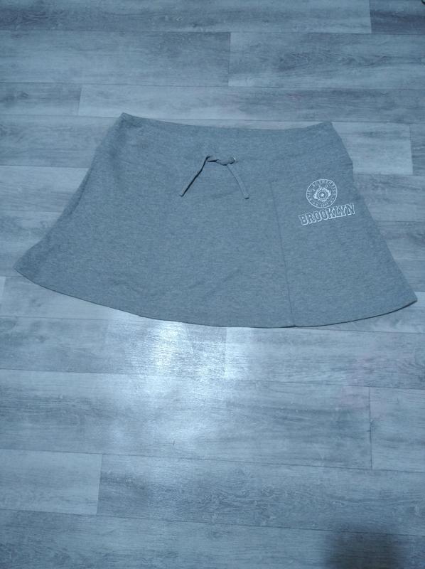 Юбка женская серая. Замеры: пояс 46 см, поб 61 см, низ 77 см, длина 41 см.