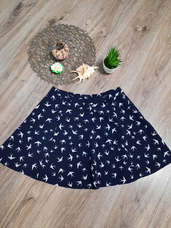 Юбка с принтом ласточки, такая же летящая и легкая ткань)) молния потайная, на боку. Пот 41, можно талию стянуть тонким ремешком, есть петельки. Новая, но без бирки. Длина 43.