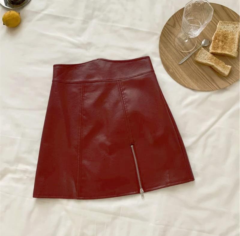 Юбка из эко кожи, высокая посадка, иммитация пояса, вишневый цвет. Размер М-L,талия 70см, бедра 94см, длина 43см. Подклад юбки - шорты.