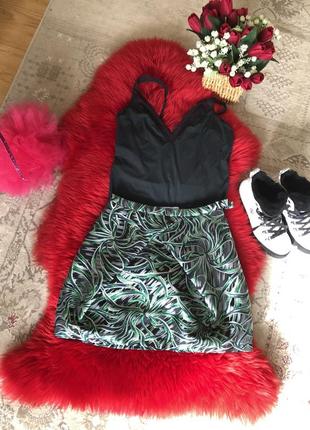 Нова. Висока посадка, тканина схожа на набивний жаккард, щільна, добре тримає форму. Врізні кишені. Якість прекрасне!