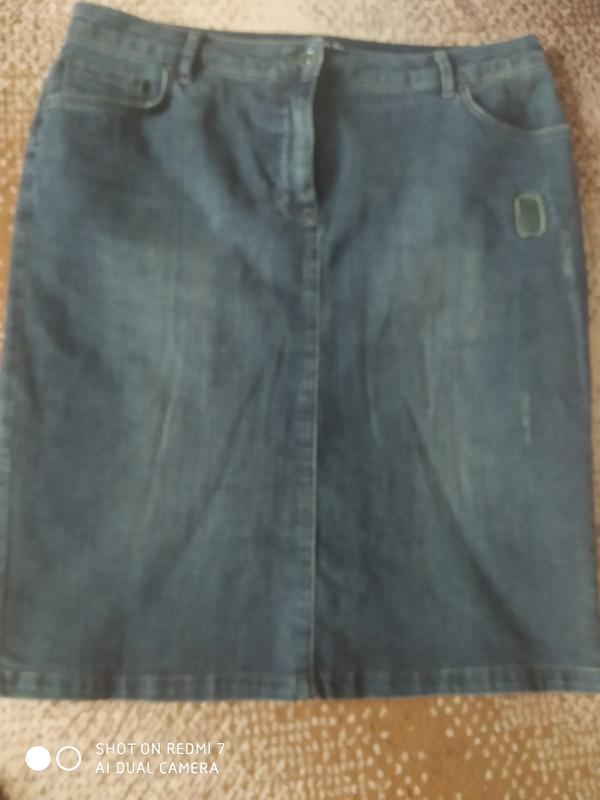 Юбка джинсовая с зеленым оттенком, с карманами