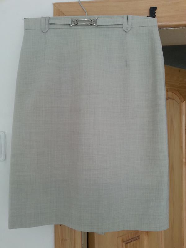 Короткая юбка( но не очень), чуть заужена книзу, светлая(цвета некрашеного льна) очень хорошего качества, с подкладкой, 44 размера Подойдет в офис с блузкой