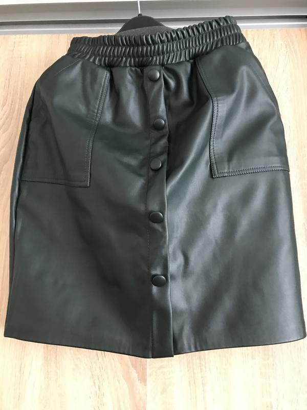 Спідниця з якісного замінника у бутилочному кольорі,дуже стильна і зручна