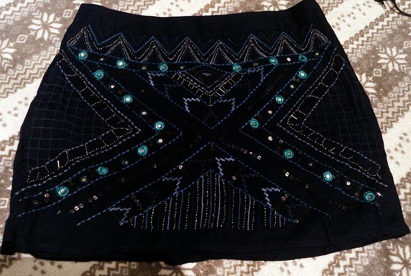 Яркая юбочка на лето . Вышита и усыпана бисером и паетками) Удобная и приятная к телу. Состояние идеальное потому как одето 1 раз. Продаю так как вещей много ,шкаф ломится .p.s Ну вы понимаете))) Хм что еще то написать о ней.)НЕт дефектов . Все паетки и бисер на месте и держат строй)) О да, она темно синего цвета ,внутри подкладка не просвечивает) Размер М (28) . Длина - 40 см .