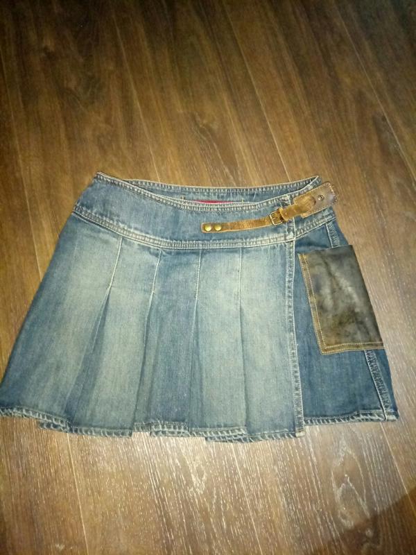 юбка джинсовая Guess с кожаным карманом. замеры пот 36, поб 43 , длина изделия 35