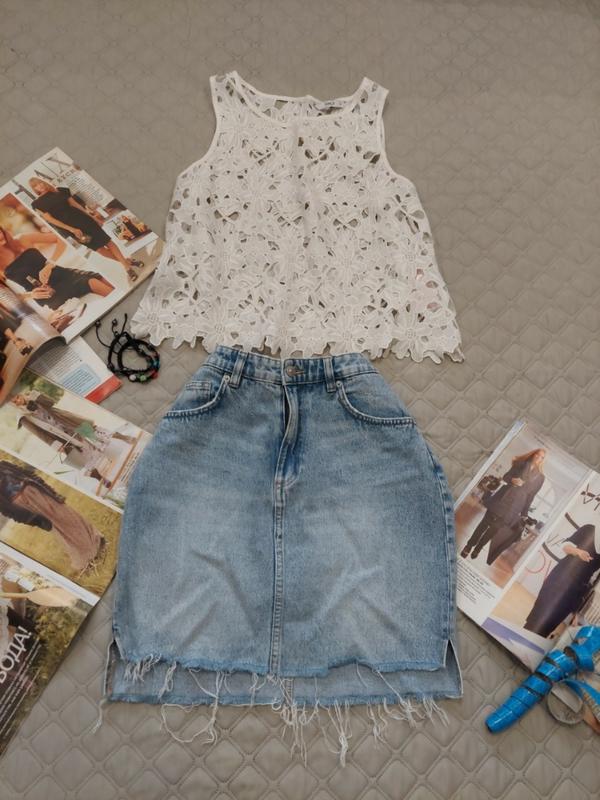 крута джинсова юбка,довжина 46см,в поясі 40см.