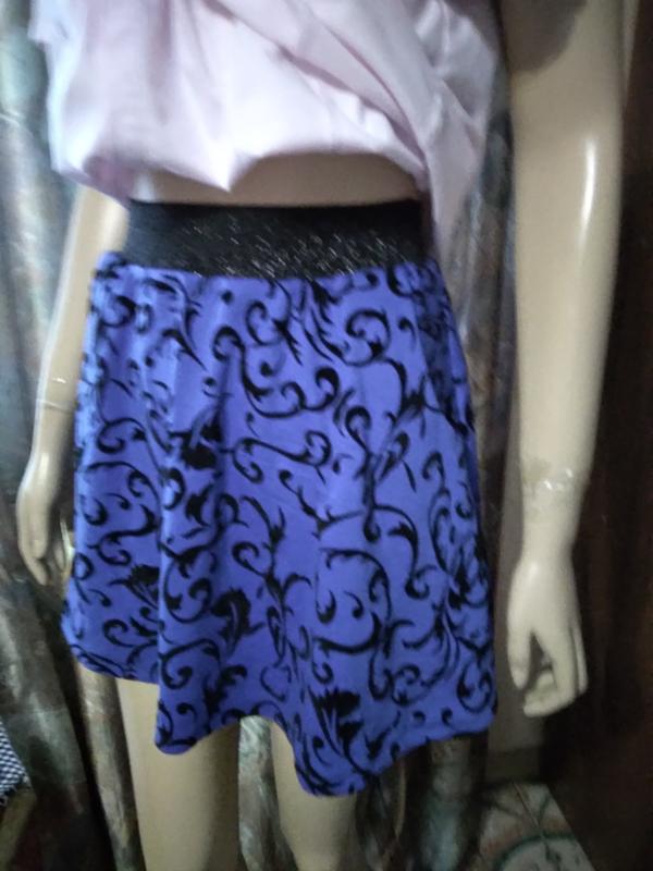 спідниця на дівчинку піт.36-38см.дл.40см.пояс гумка,з кишенями колір електрик з чорним напиленням, нова не носилася.