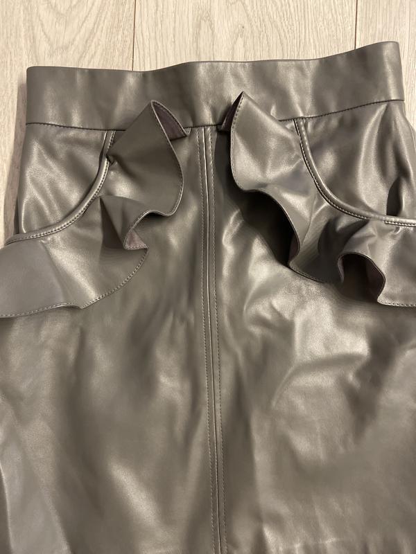 М'яка якісна екошкіра, колір граффит. Дуже актуальна модель з кишенями і довжиною до колін. Коштувала вдвічі дорожче. На підкладці.