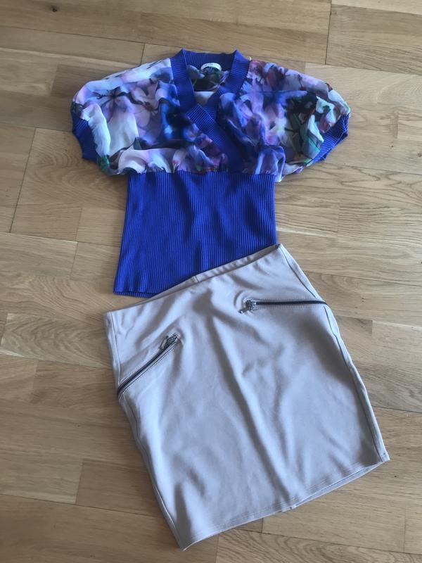 Міні спідничка, заміри на фото. Кишені обманки. Добре тягнеться тому підійде на різні розміри за бажанням. Нажаль бренду не пам’ятаю, бірки зрізала
