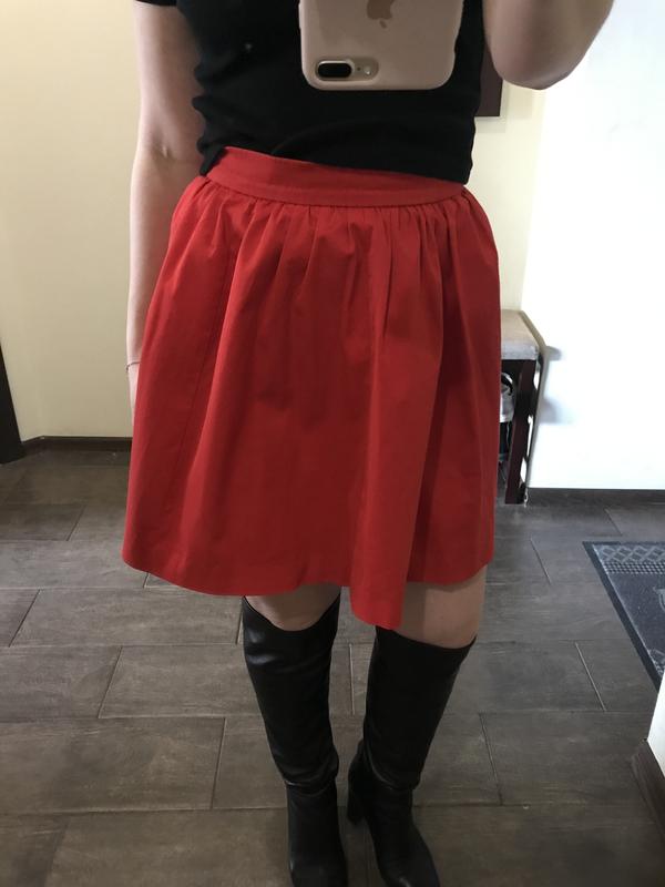 Юбка, ярко-красного цвета , 100% коттон, ткань держит форму . Очень красивая и яркая, на поясе и с красивым замком сзади, фурнитура дорогая . Юбка на подкладке, украинского дизайнера La Marque. Одевалась пару раз , в идеальном состоянии. Размер -xs-s.