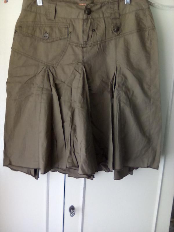 Коричневая летняя юбка с клиньями. Длина-60см, пояс-42см, бедра-52см. Размер 38-40.