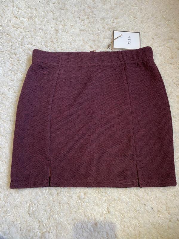 Юбка бордовая с чёрной ниткой, тянется, размер M, брэнда Vila, 80% полиэстер, 20% вискоза.